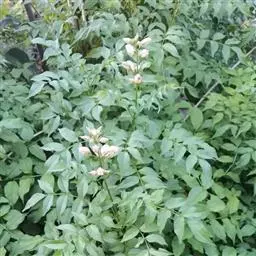 蒜香藤 春、夏、秋季均为扦插适期,尤以3-7月为佳。扦插时剪取成熟枝条,每段插穗长约15厘米左右,剪去插穗下部1/3叶片,插穗下部的切口应靠近节的下部。介质采用珍珠岩或河沙均可。扦插深度以枝干不倒为好,密度以不挤不碰为宜,保证根部透气和叶片通风及良好光照。按常规管理约3-4周可生根,生根率可达85%以上。扦插苗生根并长出新叶后,可结合喷水施0.5%-1.0%尿素,促进扦插苗生长。约7周待根系发育完全即可进行移植。