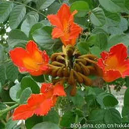 火焰木,又名苞萼木、喷泉树,为紫葳科常绿大乔木,株高10—20米,叶为奇数羽状复叶,对生,较大,斜…