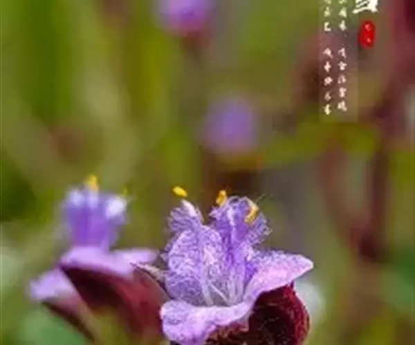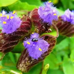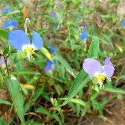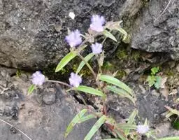 蓝耳草(学名:Cyanotis vaga (Lour.) Schultes. et J. H. Schultes)是多年生披散草本植物,基部有球状而被毛的鳞茎,茎通常自基部多分枝,叶片线形至披针形,蝎尾状聚伞花序顶生,并兼腋生,单生,总苞片较叶宽而短,佛焰苞状,苞片镰刀状弯曲而渐尖,两列,每列覆瓦状排列;萼片基部连合,长圆状披针形,顶端急尖,花瓣蓝色或蓝紫色,顶端裂片匙状长圆形;花丝被蓝色绵毛。蒴果倒卵状三棱形,种子灰褐色,具许多小窝孔。7-9月开花,10月结果。