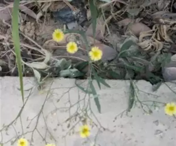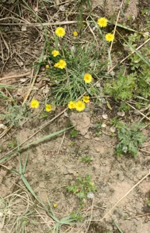 头状花序多数,在茎枝顶端排成伞房状花序,花序梗细。总苞圆柱状,长5-7毫米,果期扩大成卵球形;总苞片3层,外层及最外层极小,卵形,长0.5毫米,宽0.2毫米,顶端急尖,内层卵状披针形,长7毫米,宽2-3毫米,顶端急尖或钝,外面近顶端有鸡冠状突起或无鸡冠状突起。舌状小花黄色,极少白色,10-25枚。瘦果压扁,褐色,长椭圆形,长2.5毫米,宽0.8毫米,无毛,有10条高起的尖翅肋,顶端急尖成长1. 5毫米喙,喙细,细丝状。冠毛白色,白色,纤细,微糙,不等长,长达4毫米。花果期3-6月。