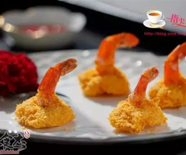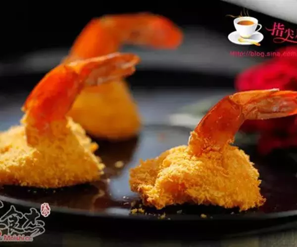 蝴蝶虾 4 将鸡蛋打成蛋液,将虾仁在蛋液中滚上一圈,再放入面包糠中滚上一圈;