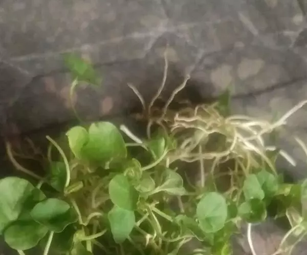 多年生匍匐小草本,茎细长,被灰色短柔毛,节上生根。叶肾形至圆形,直径4-25毫米,先端宽圆形或微缺,基部阔心形,叶面微被毛,背面被贴生短柔毛,全缘;具长的叶柄,叶柄长(1.5)3-5(6)厘米。