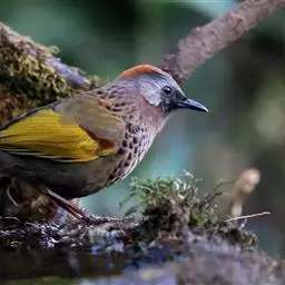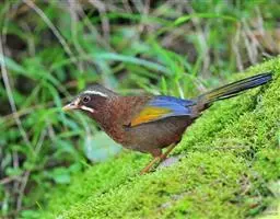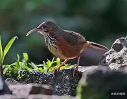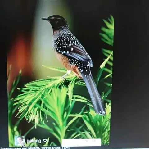 大噪鹛:中型鸟类,体长32-36厘米。额至头顶黑褐色,背栗褐色满杂以白色斑点,…