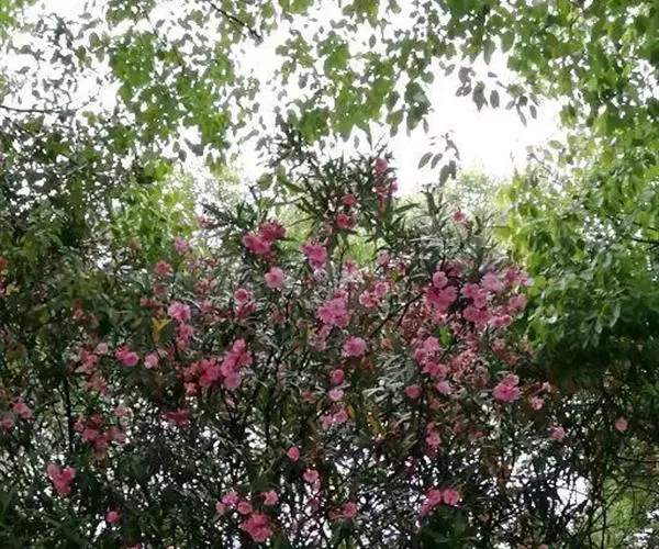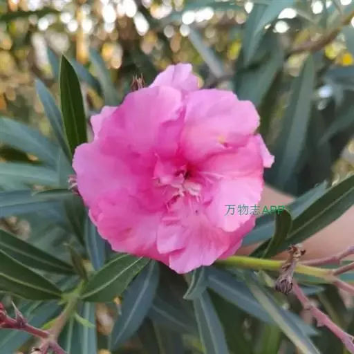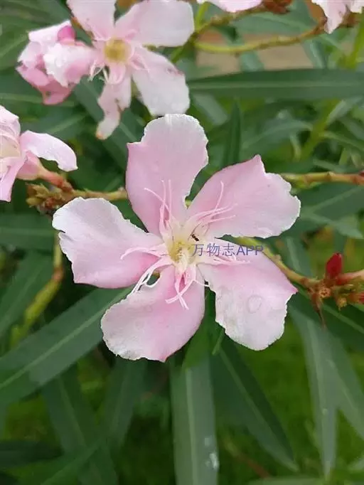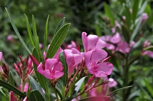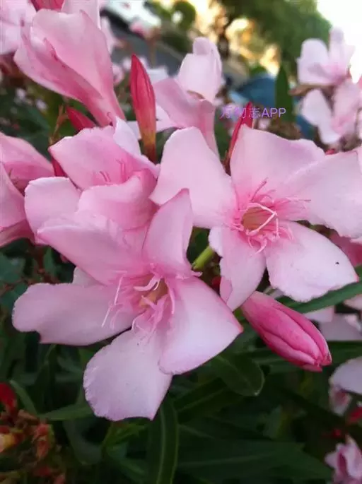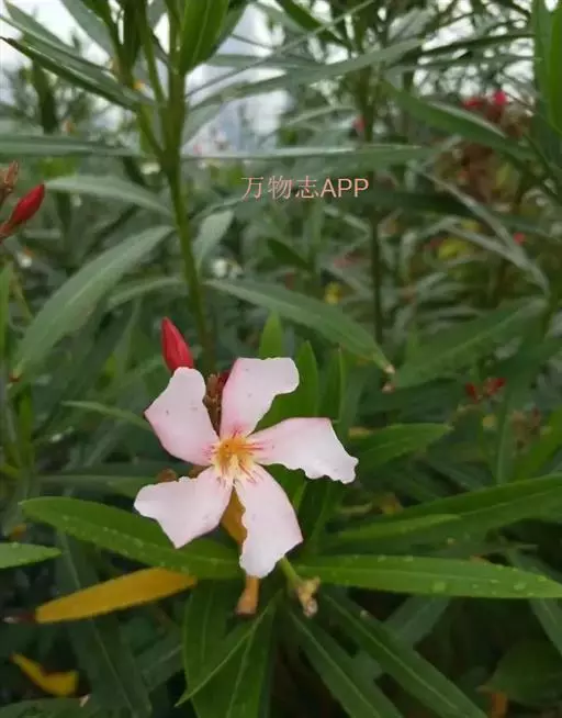 夹竹桃的叶片如柳似竹,红花灼灼,胜似桃花,花冠粉红至深红或白色,有特殊香气,花期为6-10月,是有名的观赏花卉。