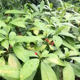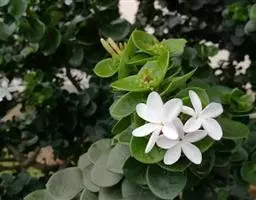狗牙花 R. Br. ex Roem. & Schult.)是夹竹桃科山辣椒属灌木植物;枝灰绿色;叶椭圆形或椭圆状长圆形,叶面深绿色,背面淡绿色,叶面扁平;花聚伞花序腋生,通常双生,萼片长圆形,边缘有缘毛,花冠白色;果长圆形;花期六至十一月;果期秋季。狗牙花因其花冠裂片边缘有皱纹,状如狗牙,故名。狗牙花原产于印度及中国云南,在广西、广东、台湾及亚洲热带和亚热带等地区广泛栽培。狗牙花喜温暖湿润,不耐寒,宜半阴,对土壤要求不严,喜肥沃、排水良好的酸性土壤,常生长于山地灌木丛中。狗牙花的主要繁殖方式为扦插。狗牙花味酸、凉,有清热降压、解毒消肿的功效,可用于治疗咽喉肿痛,跌打损伤。狗牙花枝叶茂密,株型紧凑,花朵净白素丽,典雅朴质,盛花时十分美观,且花期长,具有一定观赏价值。狗牙花还有较高的经济价值,园林中应用极为普遍,可丛植于林缘、路