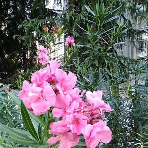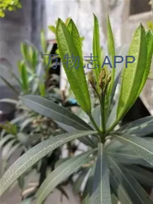 欧洲夹竹桃(Nerium oleander L.)直立常绿灌木,枝条灰绿色,含水液。叶轮生,稀对生,具柄,革质,羽状脉,侧脉密生而平行。伞房状聚伞花序顶生,具总花梗;花萼5裂,裂片披针形,双覆盖瓦状排列,内面基部具腺体;花冠漏斗状,红色、栽培有演变为白色或黄色,花冠筒圆筒形,上部扩大呈钟状,喉部具5枚阔鳞片状副花冠,每片顶端撕裂;花冠裂片5,或更多而呈重瓣,斜倒卵形,花蕾时向右覆盖;雄蕊5,着生在花冠筒中部以上,花丝短,花药箭头状,附着在柱头周围,基部具耳,顶端渐尖,药隔延长成丝状,被长柔毛;无花盘;子房由2枚离生心皮组成,花柱丝状或中部以上加厚,柱头近球状,基部膜质环状,顶端具尖头;每心皮有胚珠多颗。蓇葖2,离生,长圆形;种子长圆形,种皮被短柔毛,顶端具种毛。