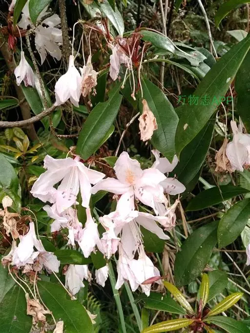 露珠杜鹃:灌木,小乔木,高约2-9米;小枝粗壮,直径约4-5毫米;幼枝有薄层绒毛和腺体,…