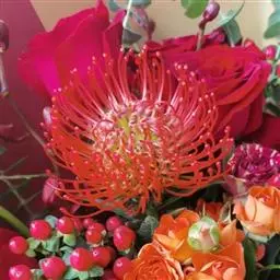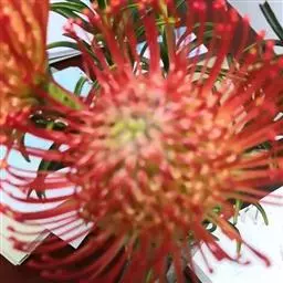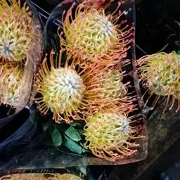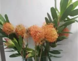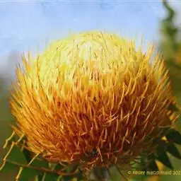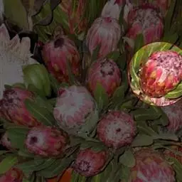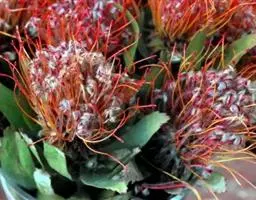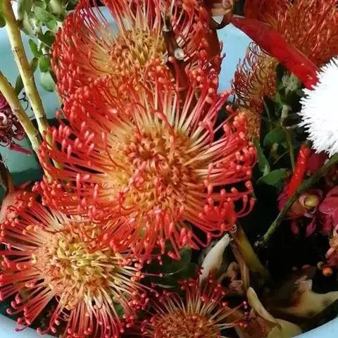 帝王花,山龙眼科帝王花属多年生常绿灌木植;茎干粗壮,叶色翠绿光亮;花朵呈圆球状;其苞片有的完全打开,…