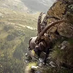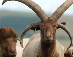 盘羊:雄性肩高可达120厘米,体重可达200千克。雄性的弯角粗大,长达1米以上,向下扭曲呈螺旋状,…