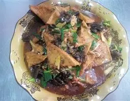 山珍豆腐是一道川菜,主料有豆腐,调料有大葱、姜、植物油、酱油、料酒。