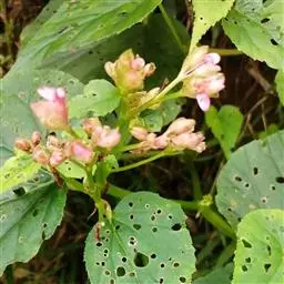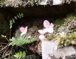 兰屿秋海棠(学名:Begonia fenicis Merr.):秋海棠科,秋海棠属的多年生无茎草本植物,根状茎长圆柱状,叶均基生,叶片两侧极不相等,轮廓卵状圆形或近圆形,上面深绿色,下面色淡,掌状脉,下面明显呈深紫色,花葶细弱,有纵棱,花聚伞花序,白色至粉红色,花被片扁圆形,花药长圆形,子房卵状长圆形,蒴果下垂,种子小极多数,5月至8月开花。