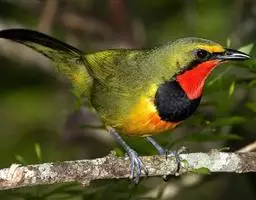 火尾绿鹛是莺科、绿鹛属小型鸟类,体长11-14厘米。上体绿色,头顶至枕具黑色鳞状斑,眼先和眼后黑色,…