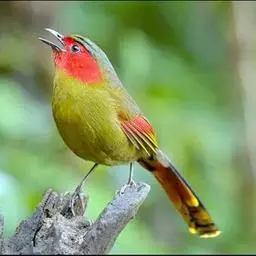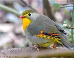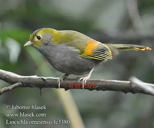 灰胸薮鹛(学名:Liocichla omeiensis),是画眉科薮鹛属的一种,为中国大陆的特有种。体型略小(17厘米)的薮鹛。上体灰橄榄色,下体及脸侧灰色。额、眉纹及颈侧橄榄黄色。虹膜-褐色;嘴-褐色;脚-褐色。雌性成鸟与雄鸟略有不同,雌鸟翼斑、尾端及尾下覆羽端部的赤红色,均被浅橙黄色所代替,其余部分与雄鸟羽色相同。