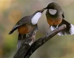 食性:主要以昆虫和植物果实与种子为食。 灰胸薮鹛嬉戏