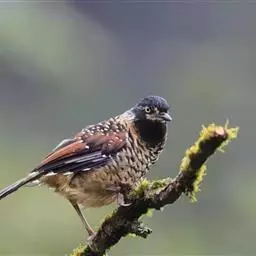 斑背噪鹛是噪眉科、噪鹛属中型鸟类,体长24-28厘米。额至头顶多为栗褐色,眼先、眼周和眼后纹均白色,…