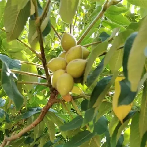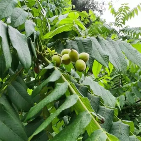 胡桃楸是胡桃科、胡桃属的乔木植物。株高可达20余米;茎皮灰色;叶椭圆形、长椭圆形、卵状椭圆形或长椭圆状披针形,具细锯齿,上面初疏被短柔毛,后仅中脉被毛,下面被平伏柔毛及星状毛;雄葇荑花序轴被短柔毛,雌穗状花序轴被茸毛;果序俯垂,果球形、卵圆形或椭圆状卵圆形,顶端尖,密被腺毛,果核棱间具不规则皱曲及凹穴,顶端具尖头;种仁较小;花期5月;果期8-9月。胡桃楸分布于中国黑龙江、吉林、辽宁、内蒙古、山西、河南、河北等省地,朝鲜、俄罗斯、日本等国家亦有分布。其喜温暖凉爽的生存环境,适宜在土层深厚、疏松肥沃、排水良好的黑垆土上栽培。一般繁殖方式为种子繁殖。胡桃楸具有止痛、敛肺定喘、温肾润肠、清热解毒等功效,可用于治疗胃痛、神经性皮炎、体质虚弱、肺虚咳嗽、肾虚腰痛、细菌性痢疾等症状。因其木材反张力小、不挠不裂,可作枪托、车轮、建筑等重要材料。