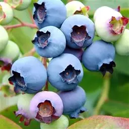 蓝莓是杜鹃花科、越橘属的落叶灌木,小枝绿色,具棱或圆柱形,通常具成行的柔毛;叶片近革质,卵形至椭圆形,…
