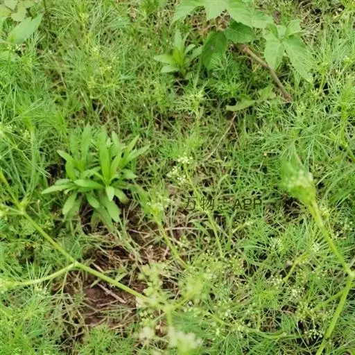 细叶旱芹(学名:Apium leptophyllum (Pers.) F. Muell. ),一年生草本,高25-45厘米。茎多分枝,光滑。根生叶有柄,基部边缘略扩大成膜质叶鞘;叶片轮廓呈长圆形至长圆状卵形,裂片线形至丝状;茎生叶通常三出式羽状多裂,裂片线形,长10-15毫米。复伞形花序顶生或腋生,通常无梗或少有短梗,无总苞片和小总苞片;花柄不等长;无萼齿;花瓣白色、绿白色或略带粉红色,卵圆形;花丝短于花瓣,很少与花瓣同长,花药近圆形,长约0.1毫米;花柱基扁压,花柱极短。果实圆心脏形或圆卵形;胚乳腹面平直,每棱槽内有油管1,合生面油管2。心皮柄顶端2浅裂。花期5月,果期6-7月。