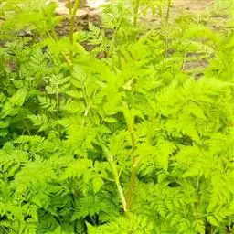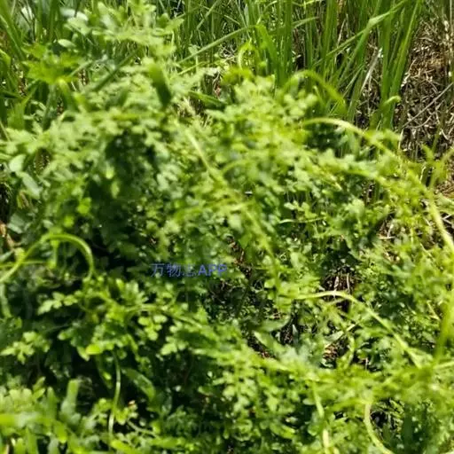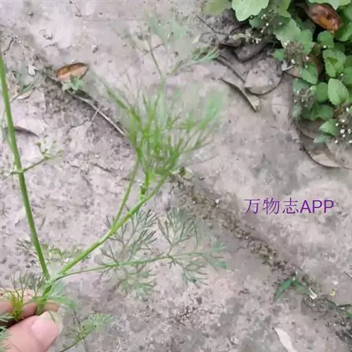 一年生草本,高25-45厘米。茎多分枝,光滑。根生叶有柄,柄长2-5 (11) 厘米,基部边缘略扩大成膜质叶鞘;叶片轮廓呈长圆形至长圆状卵形,长2-10厘米,宽2-8厘米,3至4回羽状多裂,裂片线形至丝状;茎生叶通常三出式羽状多裂,裂片线形,长10-15毫米。