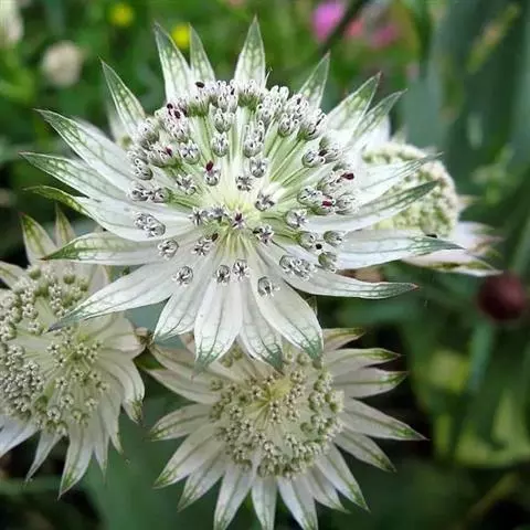 复伞形花序顶生或腋生,通常无梗或少有短梗,无总苞片和小总苞片;伞辐2-3(-5),长1-2厘米,无毛;小伞形花序有花5-23,花柄不等长;无萼齿;花瓣白色、绿白色或略带粉红色,卵圆形,长约0.8毫米,宽0.6毫米,顶端内折,有中脉1条;花丝短于花瓣,很少与花瓣同长,花药近圆形,长约0.1毫米;花柱基扁压,花柱极短。