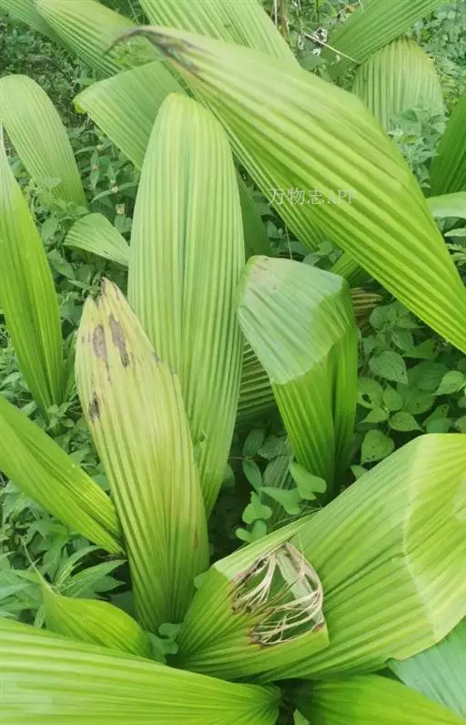 大叶仙茅 粗壮草本,高达1米多。根状茎粗厚,块状,具细长的走茎。叶通常4-7枚,长圆状披针形或近长圆形,长40-90厘米,宽5-14厘米,纸质,全缘,顶端长渐尖,具折扇状脉,背面脉上被短柔毛或无毛;叶柄长30-80厘米,上面有槽,侧背面均密被短柔毛。