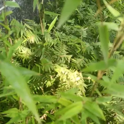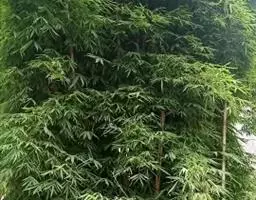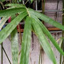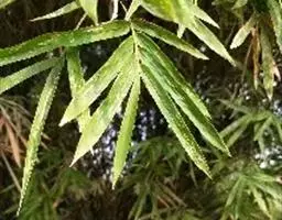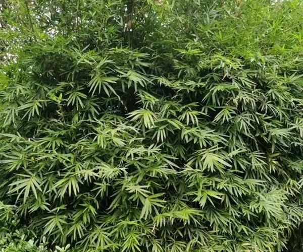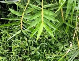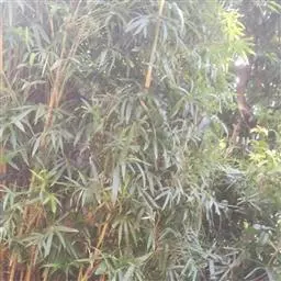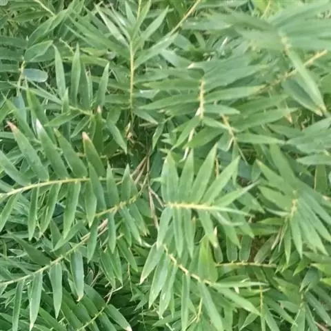 凤尾竹(Bambusa multiplex (Lour.) Raeusch. cv. Fernleaf R. A. Young):该栽培品种与观音竹(Bambusamultiplex(Lour.) Raeusch. ex Schult.var.riviereorumR. Maire)相似,但植株较高大,高3-6米,竿中空,小枝稍下弯,具9-13叶,叶片长3.3-6.5厘米,宽4-7毫米等特征与之有别。原产于中国,华东、华南、西南以至台湾、香港均有栽培。多种植以作绿篱或供观赏。