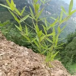 竿高4-7米,直径1.5-2.5厘米,尾梢近直或略弯,下部挺直,绿色;节间长30-50厘米,幼时薄被白蜡粉,并于上半部被棕色至暗棕色小刺毛,后者在近节以下部分尤其较为密集,老时则光滑无毛,竿壁稍薄;节处稍隆起,无毛;分枝自竿基部第二或第三节即开始,数枝乃至多枝簇生,主枝稍较粗长。