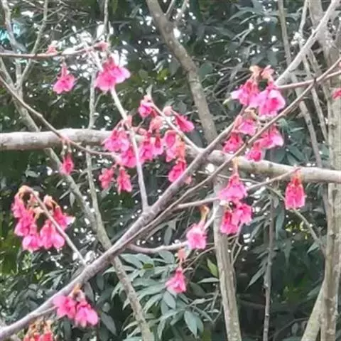 钟花樱桃 Yu et Li):乔木,灌木,高3-8米,树皮黑褐色。小枝灰褐色或紫褐色,嫩枝绿色,无毛。…