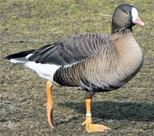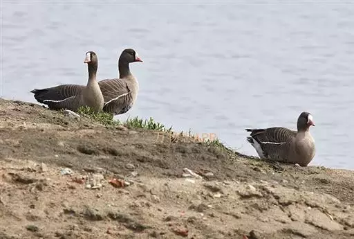 豆雁,雁形目鸭科。成鸟头、颈、背灰褐色,带淡黄色羽缘;尾上覆羽白色,尾羽黑褐色带白端,…