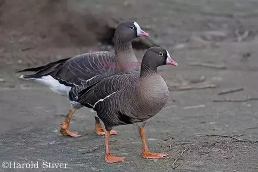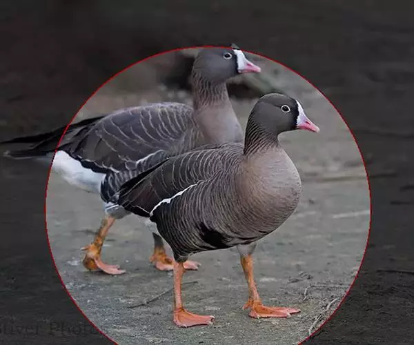 小白额雁中型雁类,外形和白额雁相似,但体形较白额雁小,体色较深,嘴、脚亦较白额雁短;而额部白斑却较白额雁大,一直延伸到两眼之间的头顶部,不像白额雁仅及嘴基;另外小白额雁眼周金黄色,而白额雁不为金黄色,这些差异,足以将它们的野外区别开来。