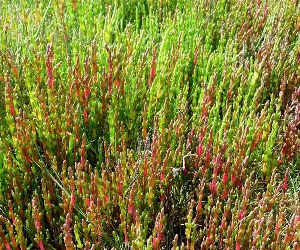 盐角草(学名:Salicornia europaea L.)是藜科,盐角草属一年生草本植物,高可达35厘米。茎直立,多分枝;枝肉质,叶不发育,鳞片状,顶端锐尖,基部连合成鞘状,边缘膜质。花序穗状,腋生,花被肉质,倒圆锥状,上部扁平成菱形;雄蕊伸出于花被之外;花药矩圆形;子房卵形;钻状,果皮膜质;种子矩圆状卵形,种皮近革质,6-8月开花结果。