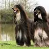 阿富汗猎犬全身披丝绢状的长毛,毛色鲜艳,呈多种颜色,背中线附近毛短,…