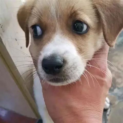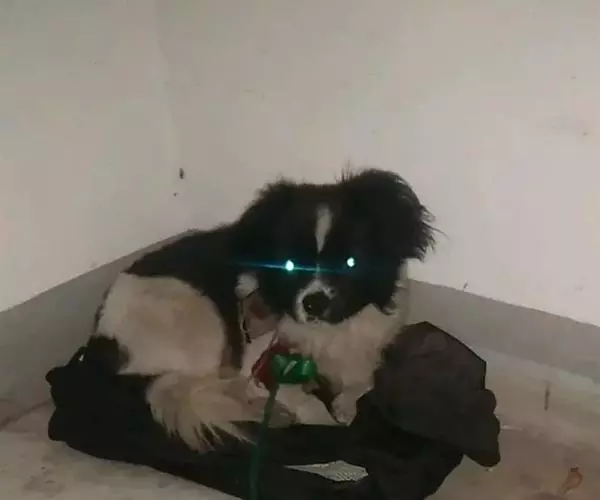 日本狆眼睛距离分的很开、大、圆、颜色深且又光泽。眼角内能看见少量白色,是这个品种特有的,使他们看上去好像很惊讶的样子。
