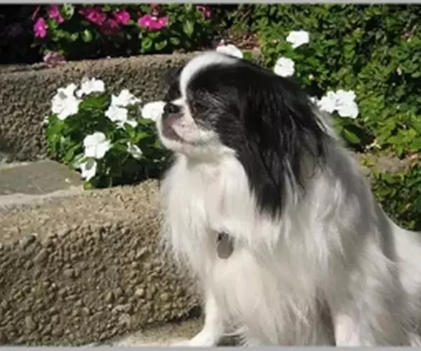 日本狆头大、宽且平。鼻子宽而且短.鼻梁明显,鼻子与眼睛在一个水平线上.黑亮的眼睛大又圆,隔着鼻子相对应。两只三角形的耳朵.披着长长的毛发对称 地垂落着,展示著仲狗的美丽与可爱。此种狗身体呈方形,颈短、上仰,背短且直,被毛丰富、长又直,如丝质般下垂。西元732年.朝鲜皇室将日本狆的祖先(中国的拉萨猎鸟犬)送到日本宫庭.后来这种犬在日本繁衍。在19世纪时。此种狗出口到美国和英格兰,经过育种家多年的繁育,目前分布较广。日本狆姿态优雅,步态轻盈有弹性。性格坚韧、活泼、机警,有些闹。忠于主人,不信任陌生人。