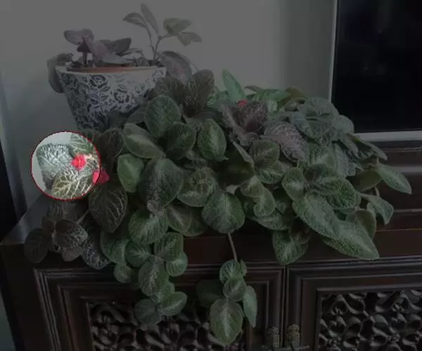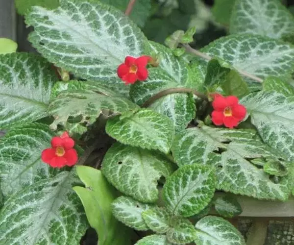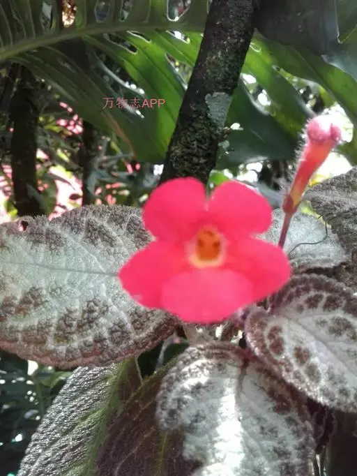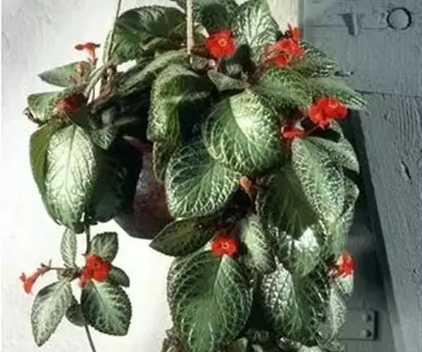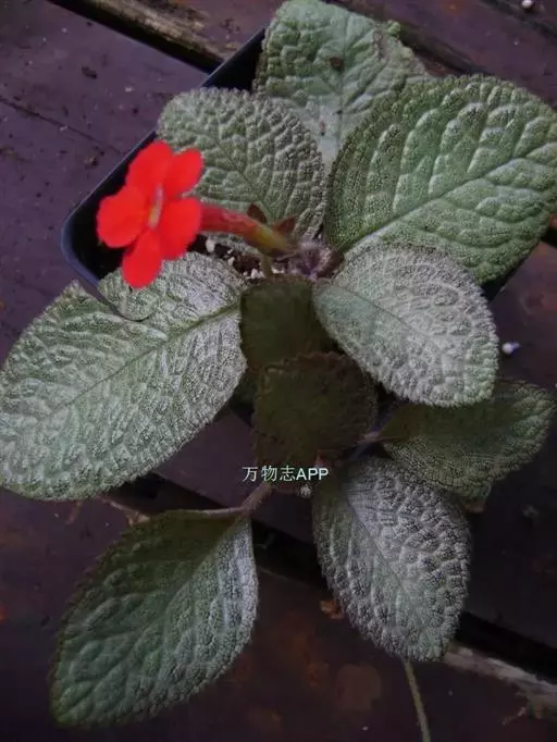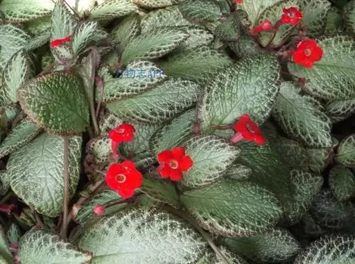 学名Episcia cupreata。“cupreata”l拉丁文,为“铜色的”。原产巴西、哥伦比亚 。同属植物8种。多年生常绿草本植物。喜荫花植株矮,高仅十几厘米,多具匍匐性,分枝多。叶对生,呈椭圆形,深绿色或棕褐色,边缘有锯齿,基部心形;叶面多皱并密生茸毛,银白色的中脉从基部至尖端,中脉及支脉两侧呈淡灰绿色,叶背浅绿色,或淡红色。自茎基部叶腋间长出匍匐茎,并沿土面向外伸展;茎顶端长出小植株。花单生或呈小簇生于叶腋间,亮红色,花期春季至秋季。果期秋季。