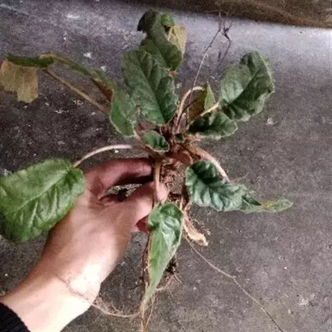 叶腋处生长走茎,匍匐状,顶端生小株,基部可生根。叶对生卵状肉质,基部心形,色绿或绿中带古铜色;叶脉银白色,叶面绿色多皱,中肋及支脉成网纹状。叶背离淡绿或淡红,密生白色软毛,叶缘有细锯齿。