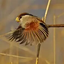 文须雀,别称髭雀、文须山雀,属雀形目、鹆鸟科、画眉亚科。眼先及髭纹黑色,头顶暗灰,…