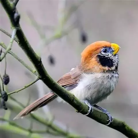 暗色鸦雀是莺科、鸦雀属小型鸟类,体长12-13厘米。嘴短而粗厚、黄色似鹦鹉嘴,头顶具短的羽冠、暗灰色,…
