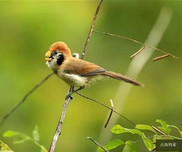 点胸鸦雀是莺科、鸦雀属小型鸟类,体长18-21厘米。头顶至枕橙棕色,嘴橙黄色、短而粗厚,脸皮黄色,…