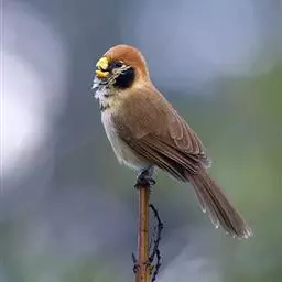 黄额鸦雀是莺科、鸦雀属小型鸟类,体长11-12厘米。嘴粗厚而短,呈鹦鹉嘴状、淡肉黄色。头顶茶黄色,…