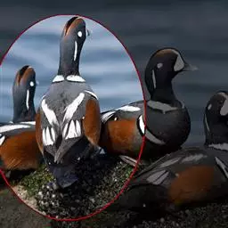 长尾鸭体长约58厘米,是中等体型的灰、黑及白色鸭,中央尾羽特长,雄鸟胸部的黑色斑块为特征。…