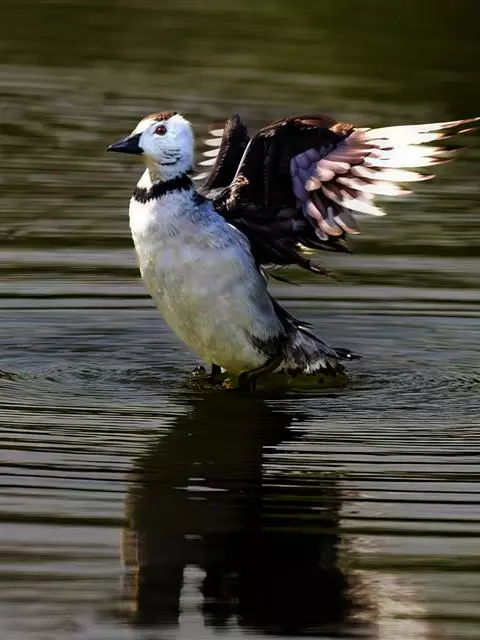 斑背潜鸭体长42-47厘米,翼展68-75厘米,体重750-1350克,是中等的体矮型鸭。…