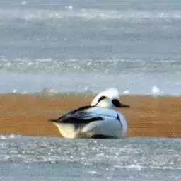 斑头秋沙鸭,是鸭科、斑头秋沙鸭属鸟类。雄鸟眼先和眼周黑色,成块斑状;头部其余部分全为白色。…