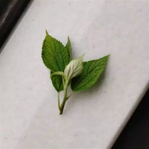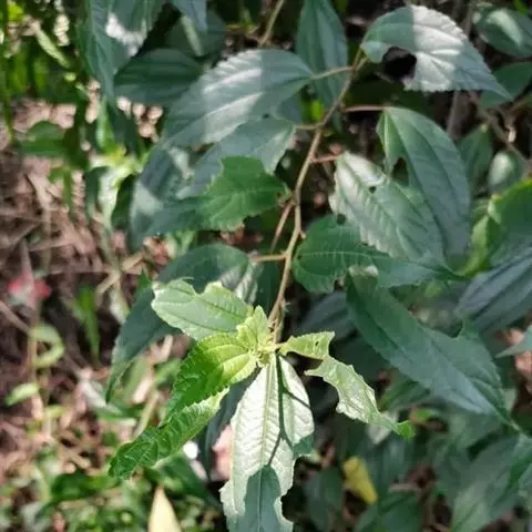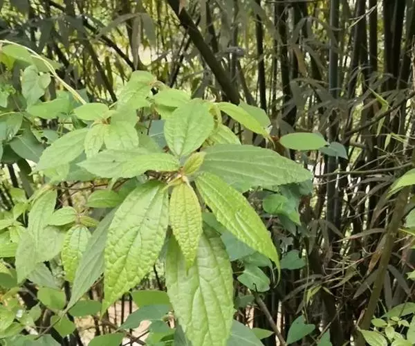 叶常生于枝的上部,草质,以后有时变纸质,卵形、狭卵形、稀倒卵形,长3-15厘米,宽1.5-6厘米,先端渐尖或尾状渐尖,基部圆形,稀宽楔形,边缘自下部以上有锯齿或粗牙齿,上面常疏生糙伏毛,有时近平滑,下面常被灰白色毡毛,以后渐脱落,或只生柔毛或多少短伏毛,基出脉3,其侧出的一对,稍弧曲,与最下一对侧脉环结,侧脉2-3对,在近边缘处彼此环结;叶柄长1-7厘米,被粗毛;托叶条状披针形,长约10毫米,先端尾状渐尖,背面中肋疏生粗毛。