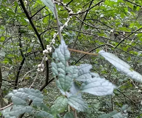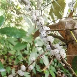 花序生于上年生枝和老枝上,几无梗,呈簇生状,团伞花簇径3-5毫米。雄花在芽时径约1.5毫米;花被片3,在下部合生,长圆状卵形,内弯,外面上部有毛;雄蕊3;退化雌蕊棒状,长约0.6毫米,被白色绵毛。雌花无梗,长1毫米。