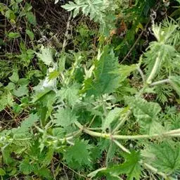 紫麻(学名:Oreocnide frutescens (Thunb.) Miq.),别称:紫麻(广州植物志)、山麻(浙江)、紫苎麻(中国树木分类学)、白水苎麻(湖北)、野麻(贵州)、大麻条(四川、大毛叶(云南龙陵)等,是双子叶植物纲、荨麻目、荨麻科、紫麻属的一种植物。灌木稀小乔木,高1-3米;小枝褐紫色或淡褐色,上部常有粗毛或近贴生的柔毛,稀被灰白色毡毛,以后渐脱落。