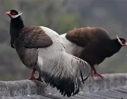 • 白颈长尾雉:大型鸡类,体长81厘米,体型大小和雉鸡相似。雄鸟头灰褐色,颈白色,脸鲜红色,其上后缘有…