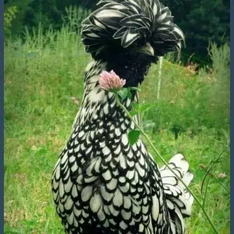 母鸡头部的羽毛格外茂盛,犹如欧洲贵妇使用的羽毛帽,相当尊贵华丽,使得贵妃鸡不虚此名。
