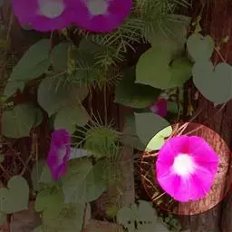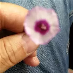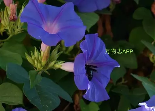 叶 喇叭花的叶宽卵形或近圆形,深或浅的3裂,偶5裂,长4-15厘米,宽4.5-14厘米,基部圆,心形,中裂片长圆形或卵圆形,渐尖或骤尖,侧裂片较短,三角形,裂口锐或圆,叶面或疏或密被微硬的柔毛;叶柄长2-15厘米,毛被同茎。 花 喇叭花的花腋生,单一或通常2朵着生于花序梗顶,花序梗长短不一,长1.5-18.5厘米,通常短于叶柄,有时较长,毛被同茎;苞片线形或叶状,被开展的微硬毛;花梗长2-7毫米;小苞片线形;萼片近等长,长2-2.5厘米,披针状线形,内面2片稍狭,外面被开展的刚毛,基部更密,有时也杂有短柔毛;花冠漏斗状,长5-8(-10)厘米,蓝紫色或紫红色,花冠管色淡;雄蕊及花柱内藏;雄蕊不等长;花丝基部被柔毛;子房无毛,柱头头状。 喇叭花的花期6—10月。