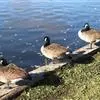 黑雁是雁形目鸭科黑雁属鸟类,又称黑鹅。头、颈、胸、嘴及脚黑褐色;虹膜褐色;背及两翼灰褐色;尾下覆羽白色;胸侧及胁部多近白色纹;颈部两侧各具一个特征性白色横纹,在颈前后断开,未能联成颈环。幼鸟颈部无白斑,而翅上多白色横纹。黑雁繁殖于北美洲、西伯利亚极地的苔原冻土带,越冬于南方沿海的草地及河口。在中国安徽也能见其身影。主要栖息在海湾、海港及河口等地,在冬季里大多出现在有耐碱植物生长的湖泊和水库周围,也出现在周围地势低洼的咸水湖和沿海地区,偶尔还出现在农田地里。性活跃,喜集群,常成群活动和栖息。主要以植物性食物为食。繁殖期在6-8月,雌鸟孵卵,雄鸟通常在距巢100米以内范围内守候警诫。雌鸟孵卵时常将头和颈朝地面平伸出去以降低高度。孵化期为22-28天。黑雁被列入中国林业局2000年8月1日发布的《国家保护的有益的或者有重要经济、科学研究价值的陆生野生动物名
